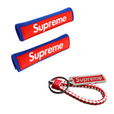 Supreme3M Set Embroidered Logo Blue Seat Belt Covers with Metal Pendant with Calf Leather Keychain For Honda Toyota