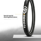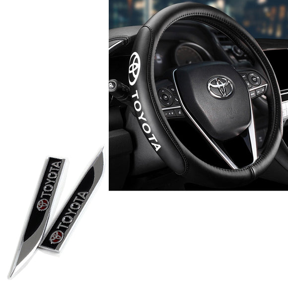 Toyota Black Set Genuine Leather 15" Diameter Car Auto Steering Wheel Cover with 3D Metal Emblems