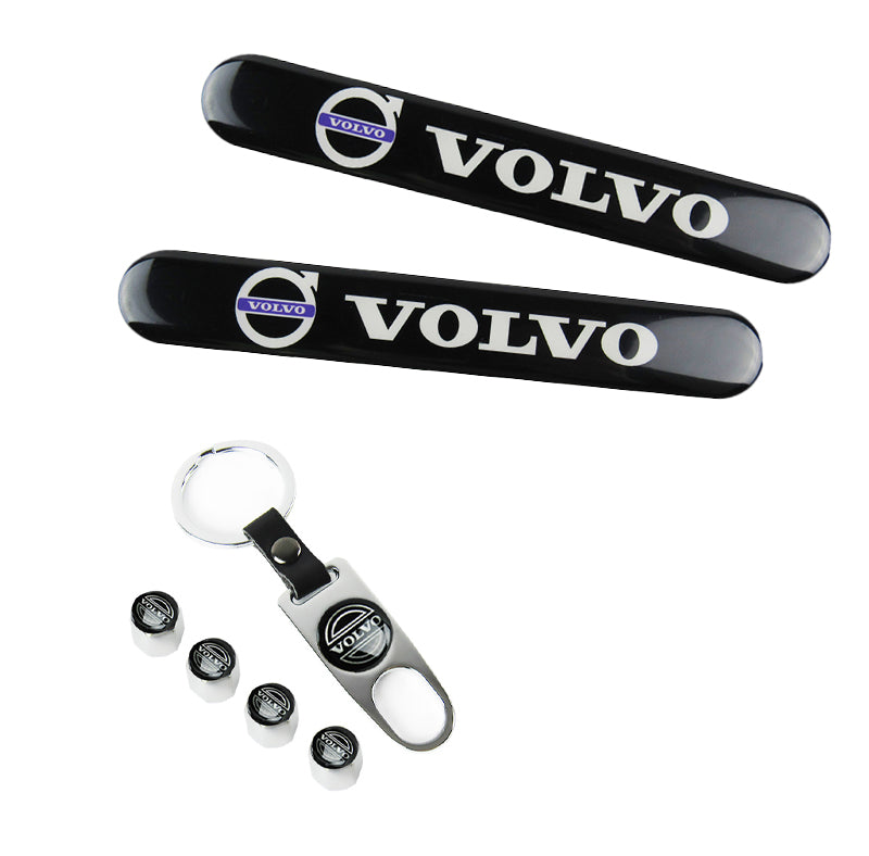 VOLVO Set LOGO Emblems with Silver Tire Valves Wheel Air Caps Keychain - US SELLER