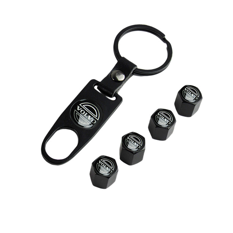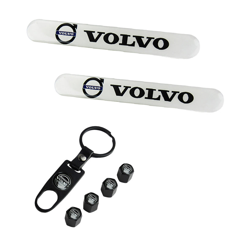 VOLVO LOGO Set Emblems with Black Wheel Tire Valves Air Caps Keychain - US SELLER