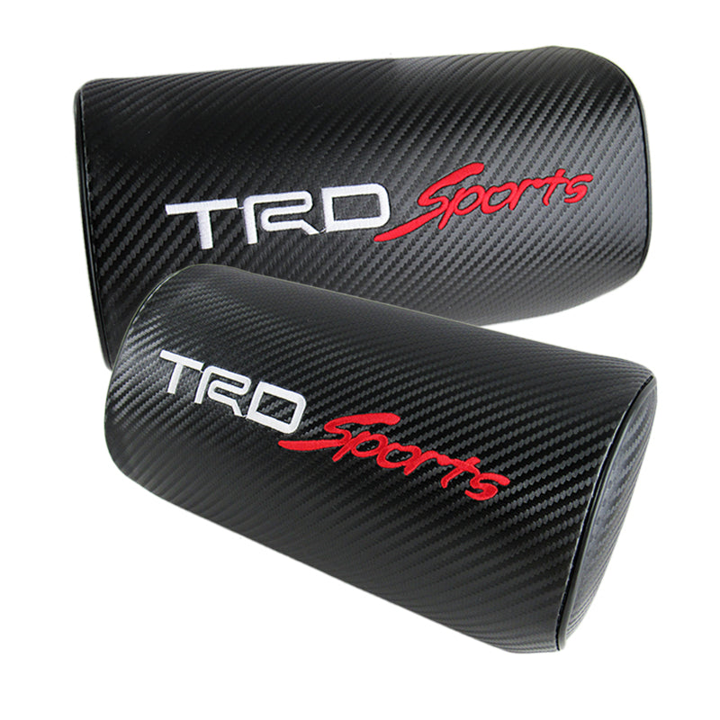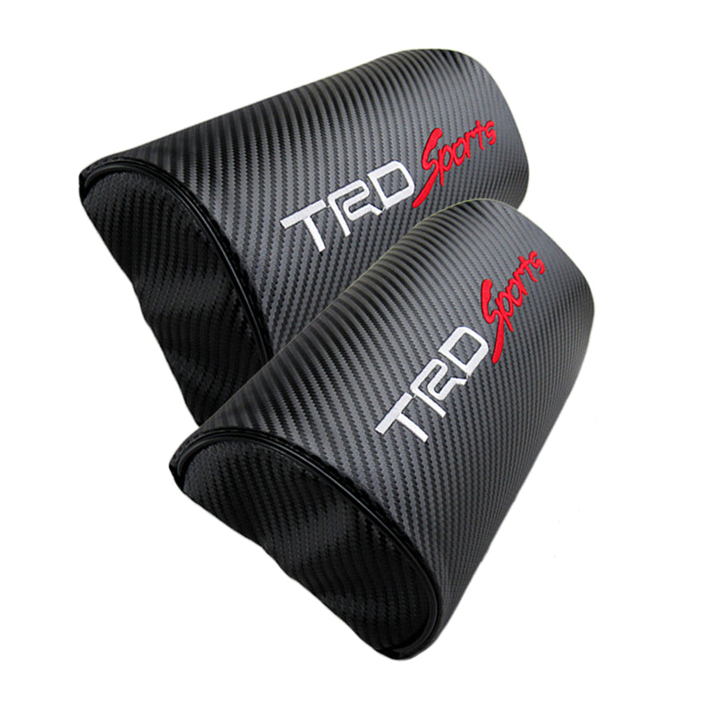 Embroidery Carbon Look Car Neck Rest Pillow For JDM TRD SPORTS Cushion Headrest Set
