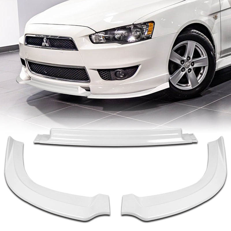 For 2008-2015 Mitsubishi Lancer RA-Style 3-PCS Painted White Front Bumper Spoiler Lip