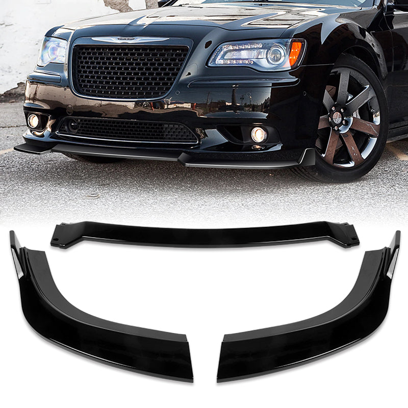 For 2012-2014 Chrysler 300 SRT8 3-PCS Painted Black Front Bumper Splitter Spoiler Lip