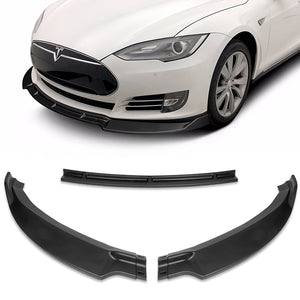 For 2012-2016 Tesla Model S STP-Style 3-PCS Matt Black Front Bumper Body Spoiler Lip