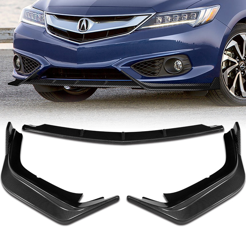 For 2016-2018 Acura ILX Sedan 3-PCS Carbon Painted Front Bumper Spoiler Splitter Lip