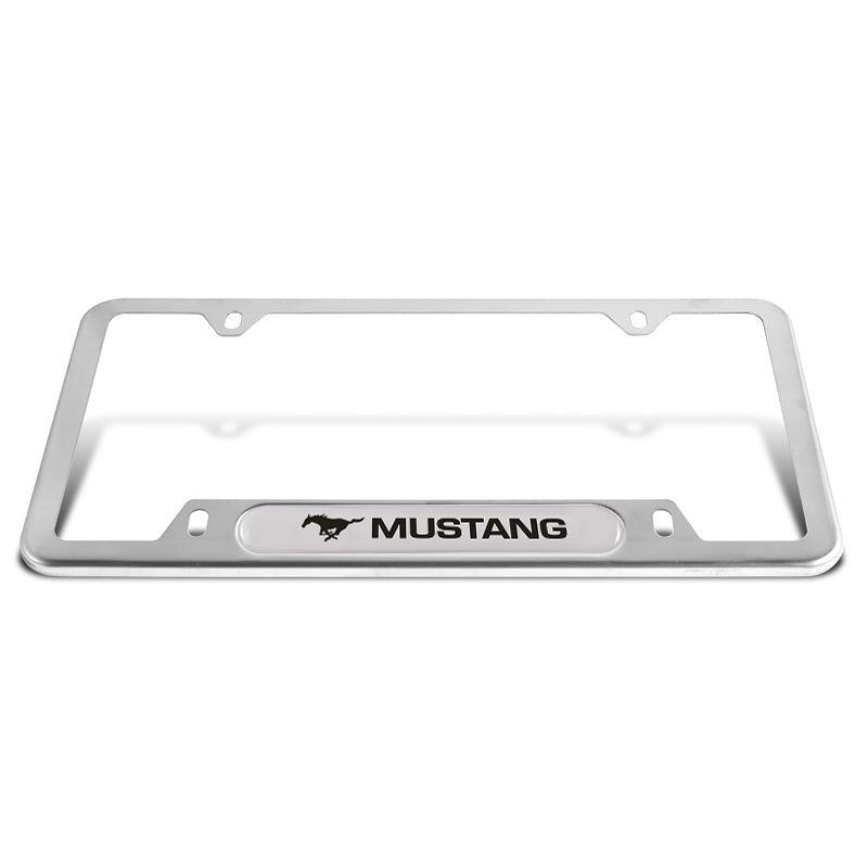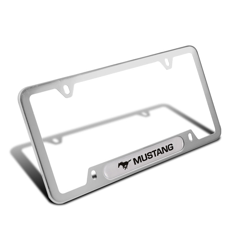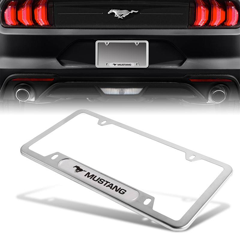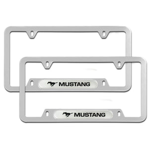2PCS MUSTANG Stainless Steel License Plate Frame Silver Metal Brand New