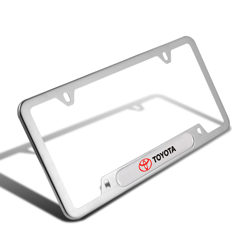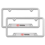 2PCS TOYOTA Stainless Steel Metal License Plate Frame Silver New