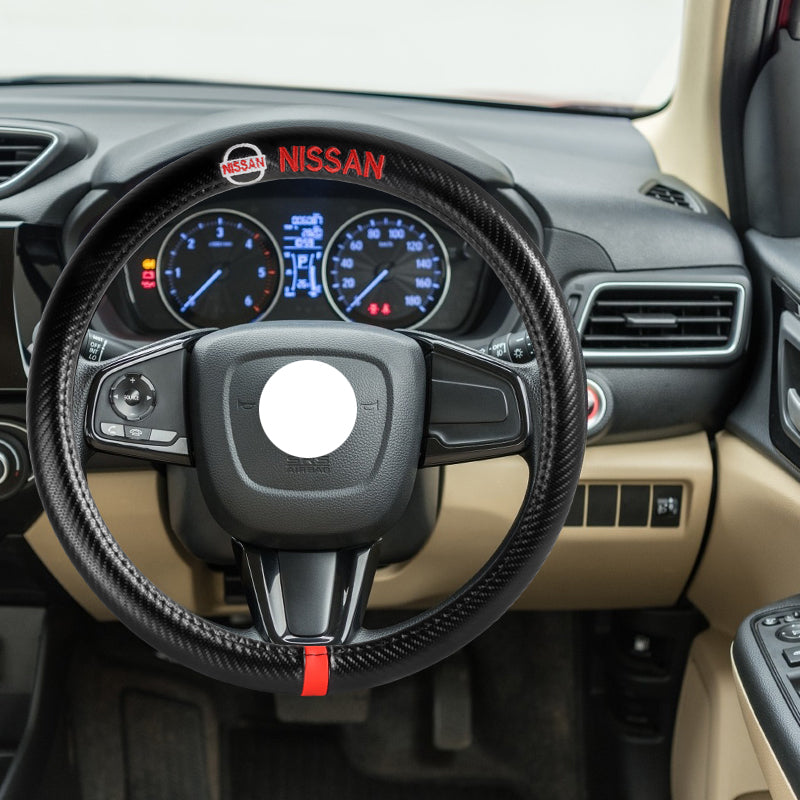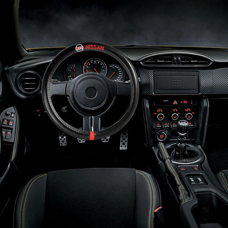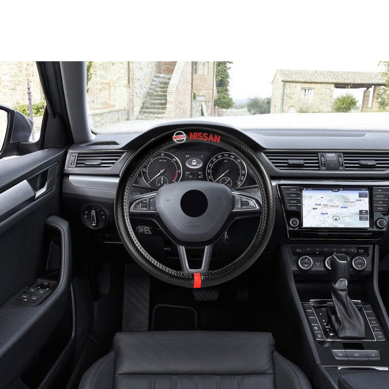 For all Nissan NISMO 15" Diameter Car Steering Wheel Cover Carbon Fiber Look Leather X1