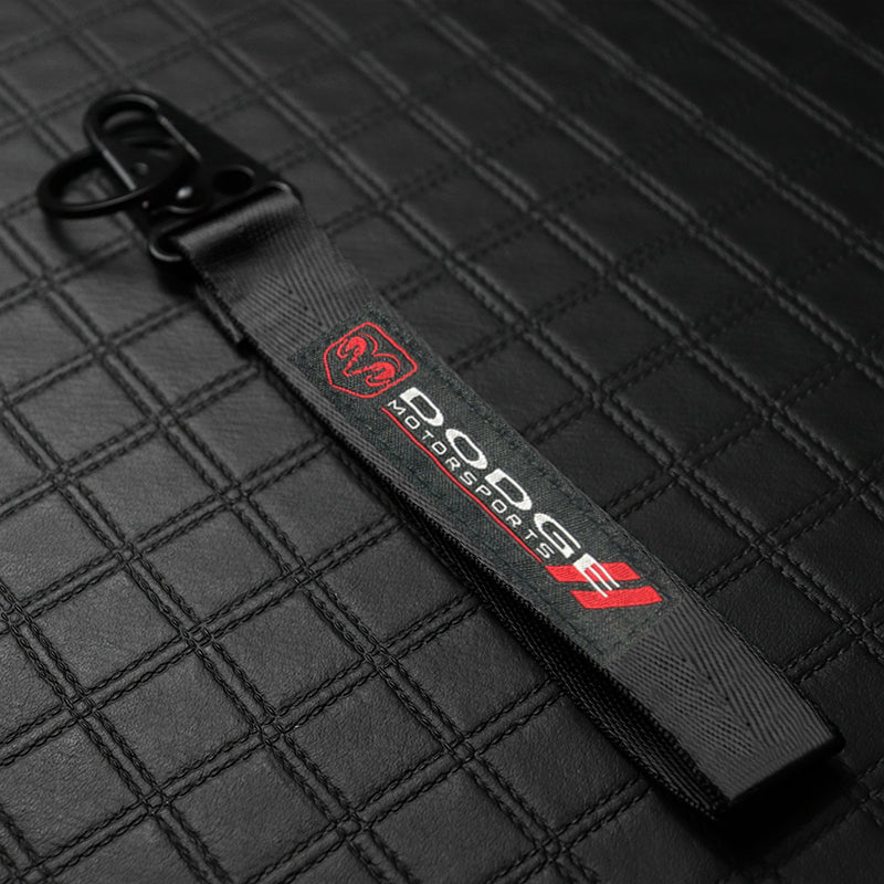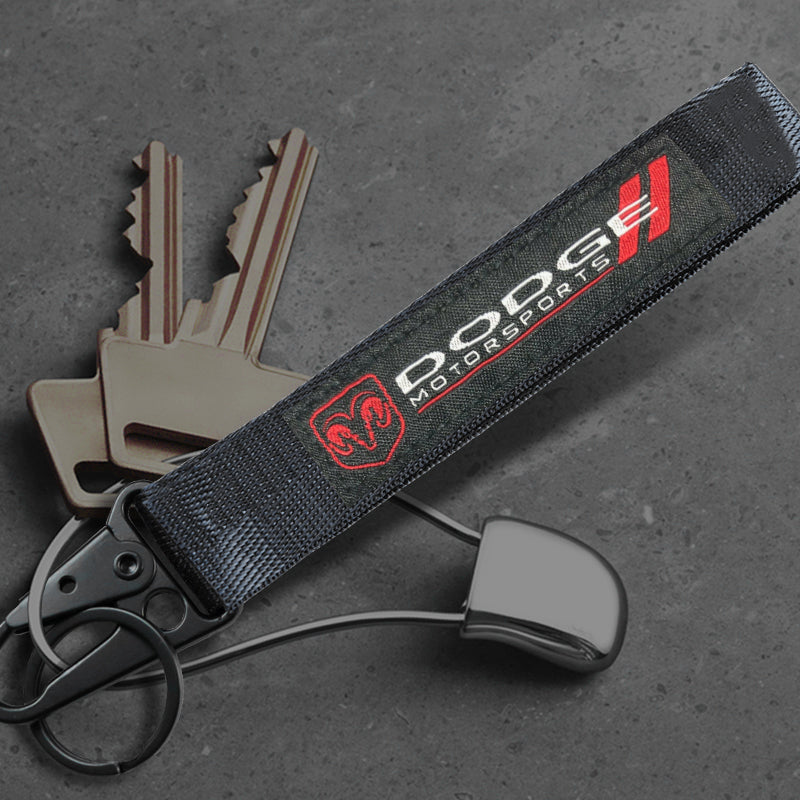 For Dodge Racing Logo Keychain Metal Key Ring Hook Black Strap Nylon Lanyard