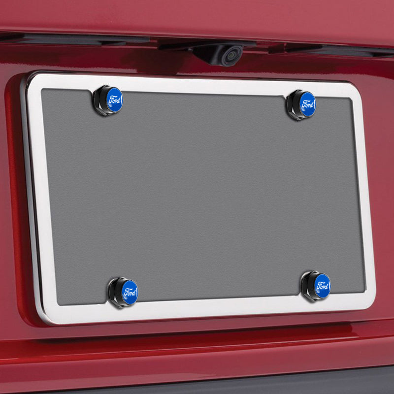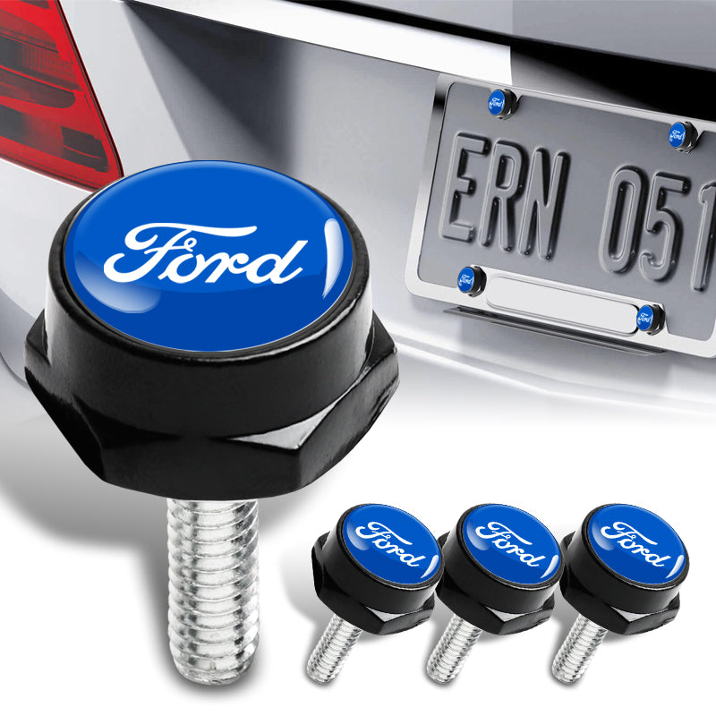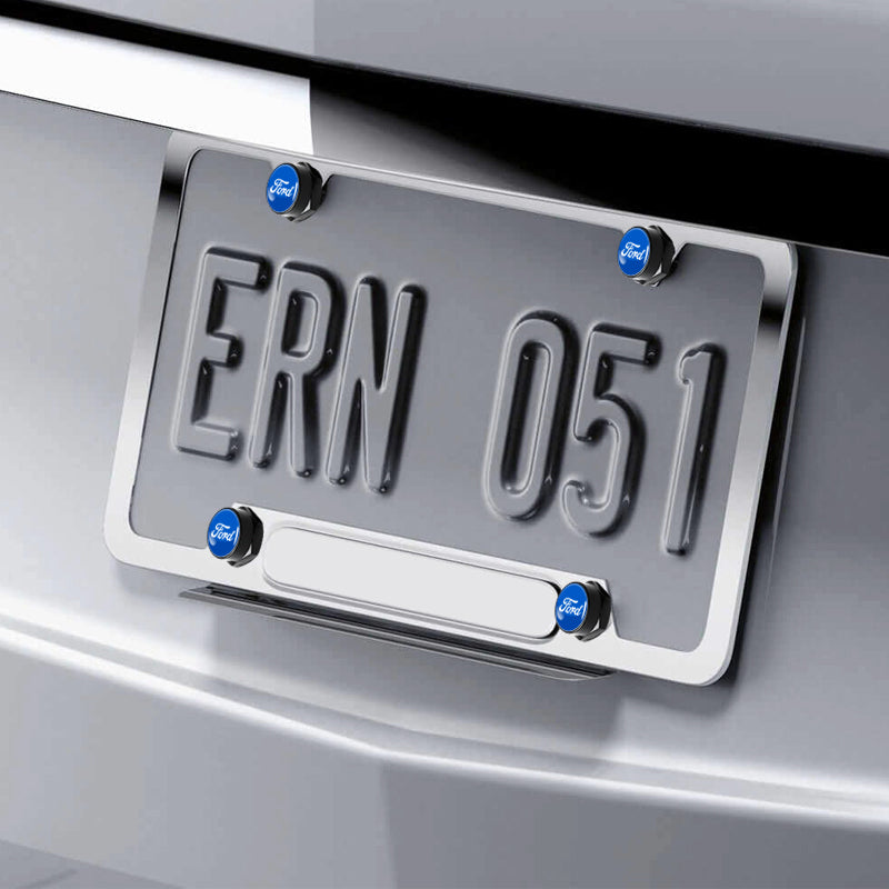 For FORD Black/Blue Car License Plate Frame Security Screw Bolt Caps Covers 4pcs