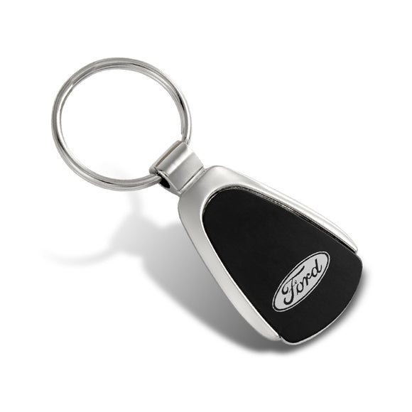 For FORD Logo Authentic Metal Chrome Black Tear Drop Key Chain Ring Fob