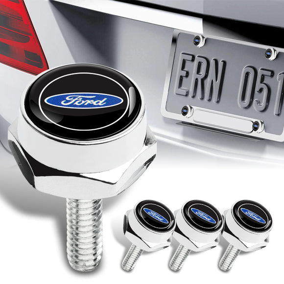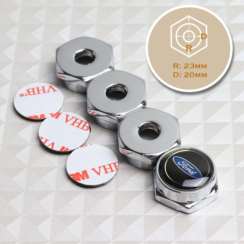 For FORD Silver Car License Plate Frame Security Screw Bolt Caps Covers 4PCS Set