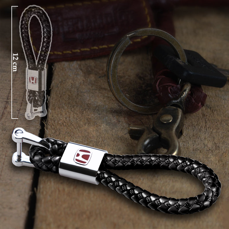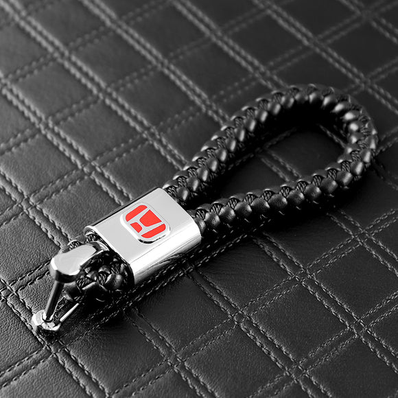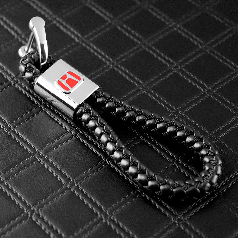 Honda Black BV Style Calf Leather Keychain (Red H)