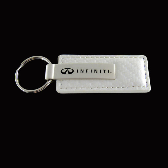 For INFINITI GENUINE White Carbon Fiber Leather Key Fob Keyring Keychain