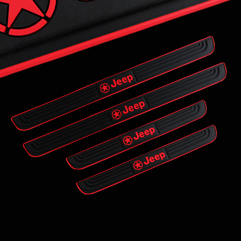 For Jeep 4PCS Black Rubber Car Door Scuff Sill Cover Panel Step Protector