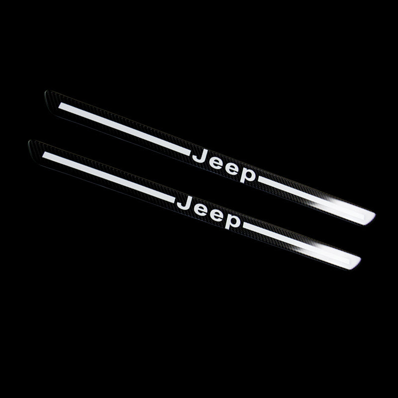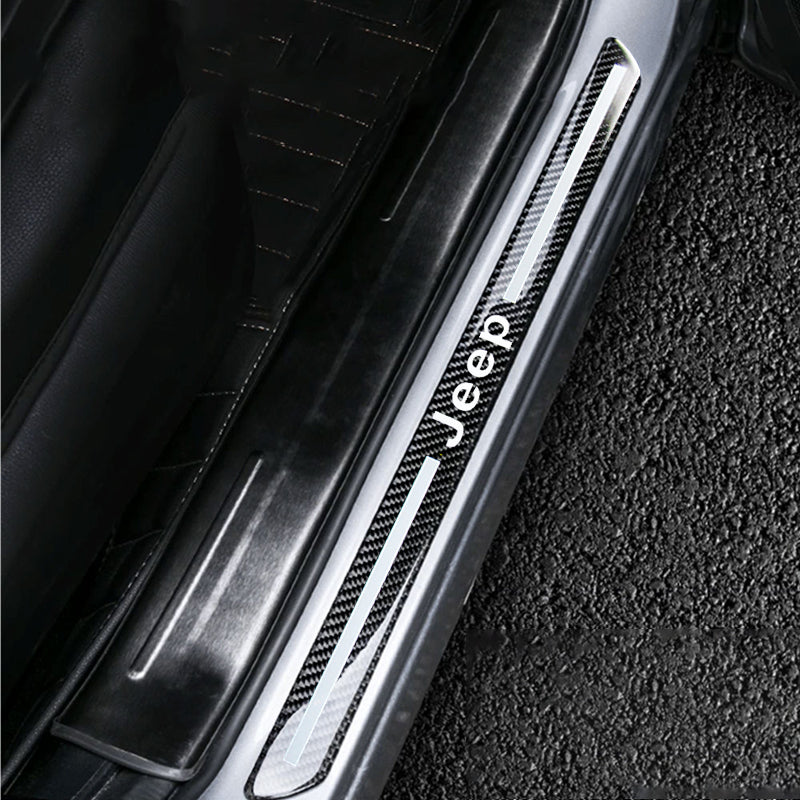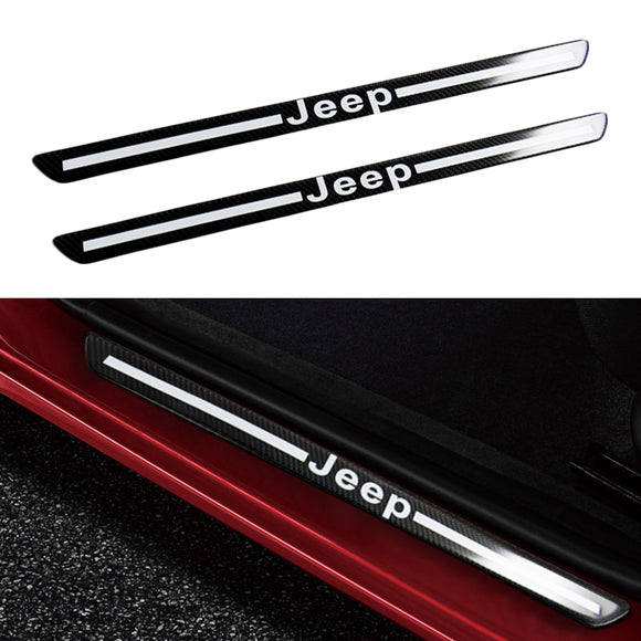 For JEEP Carbon Fiber Car Front Door Welcome Plate Sill Scuff Cover Panel Sticker 2pc Set