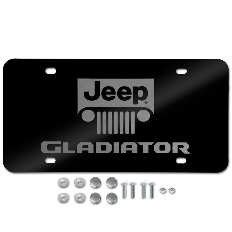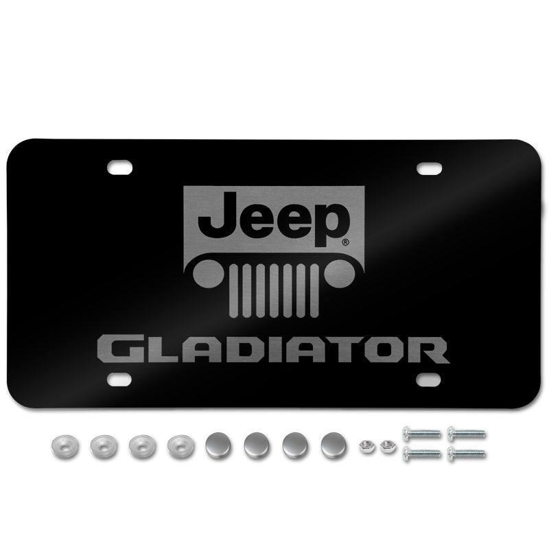 For JEEP GLADIATOR Stainless Steel Laser Etched License Plate Black PL.GLADNL.EB + Chrome Caps