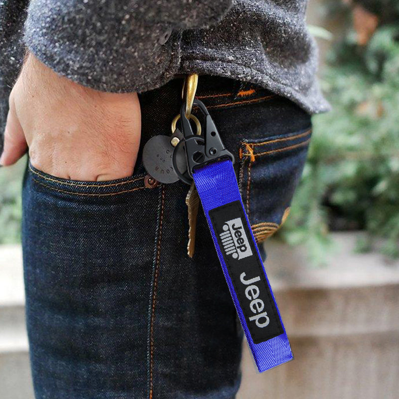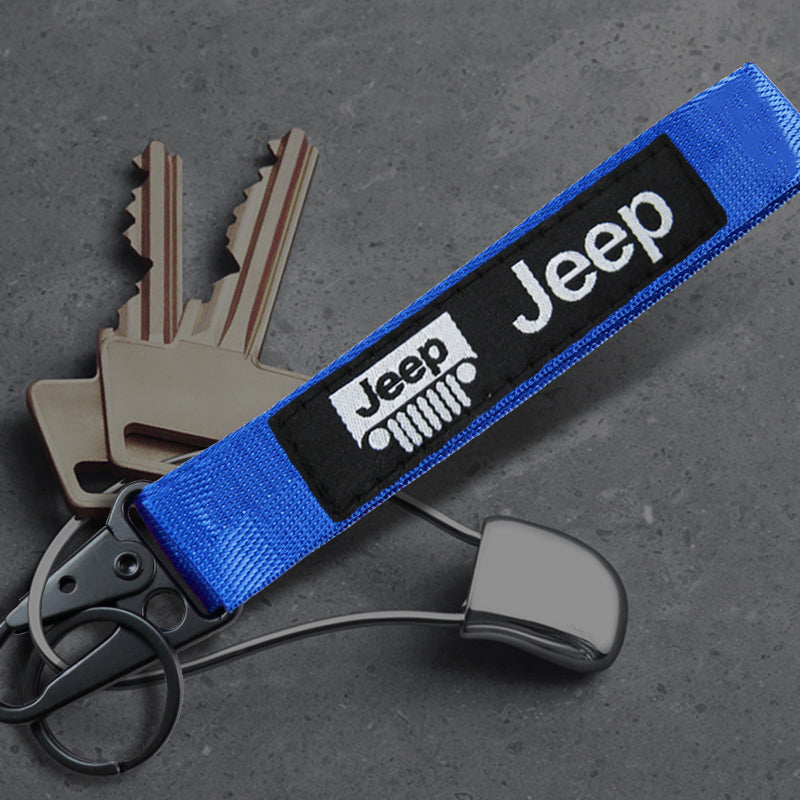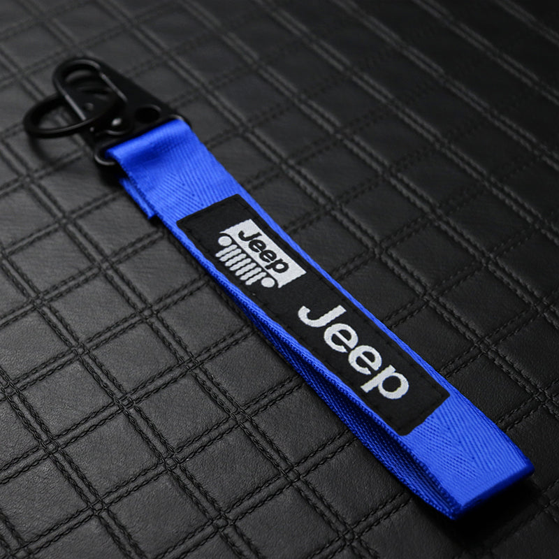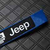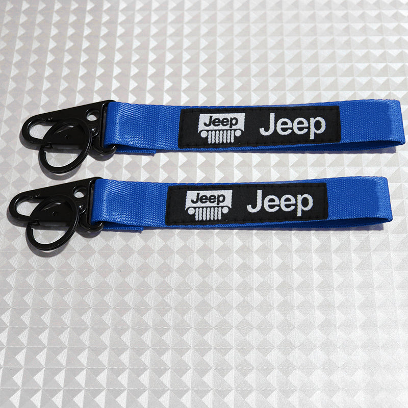 For JEEP Racing Universal Keychain Metal Key Ring Hook Strap Blue Nylon Lanyard x2