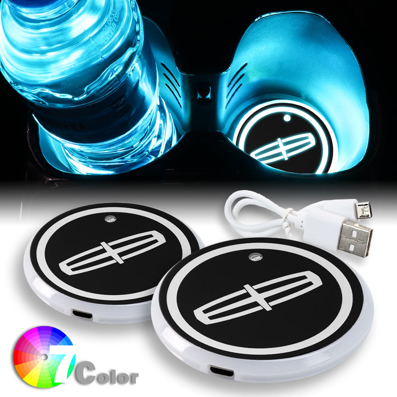 For Lincoln Colorful LED Car Cup Holder Pad Mat Interior Atmosphere Lights 2PCS