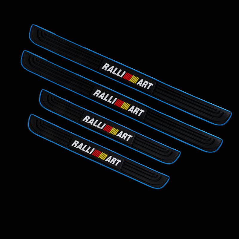 For Mitsubishi RALLIART Rubber Blue Trimmed Car Door Scuff Sill Cover Panel Step Protector