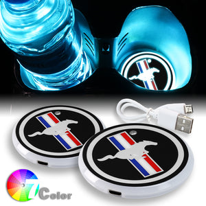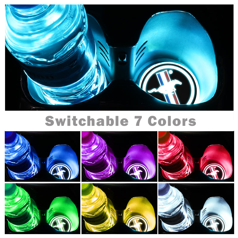 For Mustang Colorful LED Car Cup Holder Pad Mat Interior Atmosphere Lights 2PCS