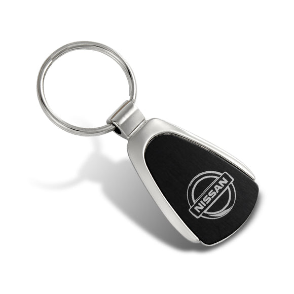 For Nissan Logo Authentic Metal Chrome Black Tear Drop Key Chain Ring Fob