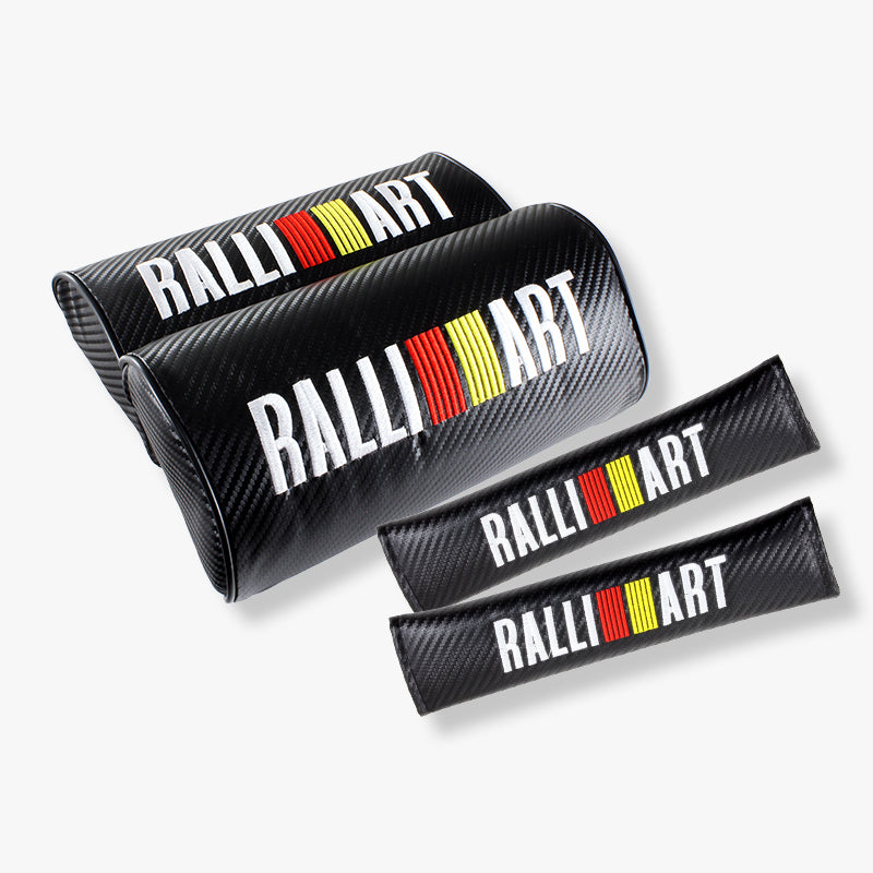 For RALLIART Car Seat neck rest pillow & 2pcs Car seat belt cover for EVO Set