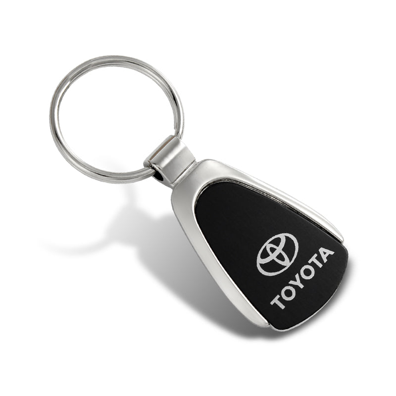 For TOYOTA Logo Authentic Metal Chrome Black Tear Drop Key Chain Ring Fob