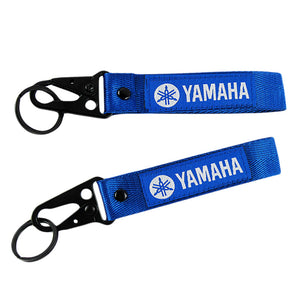 For YAMAHA JDM Blue Lanyard Nylon Bike Backpack key Ring Hook Strap Metal Keychain X2