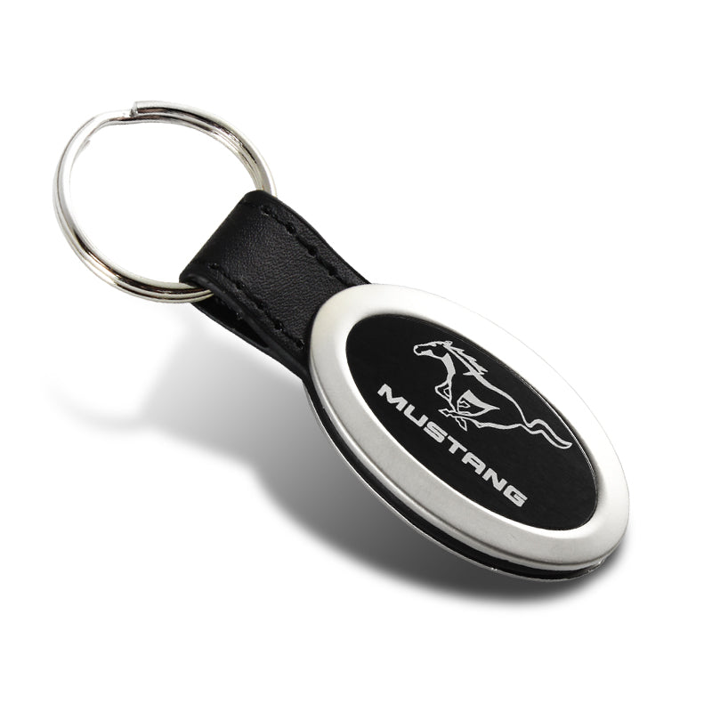 Ford Mustang Logo Black Oval Leather Chrome Key Fob Key ring Keychain Lanyard