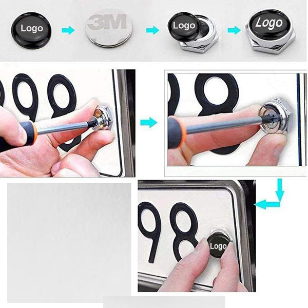 - 4 pcs set License Plate Screws Bolts with logo stickers + 3 kinds of screws