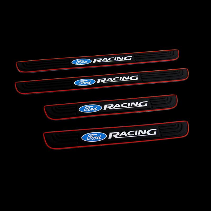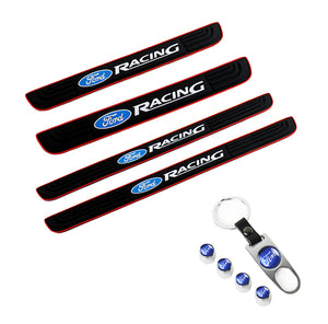 Ford Racing Set Car Door 4PCS Rubber Scuff Sill Panel Step Protector with Keychain Wheel Tire Valves Dust Stem Air Caps