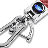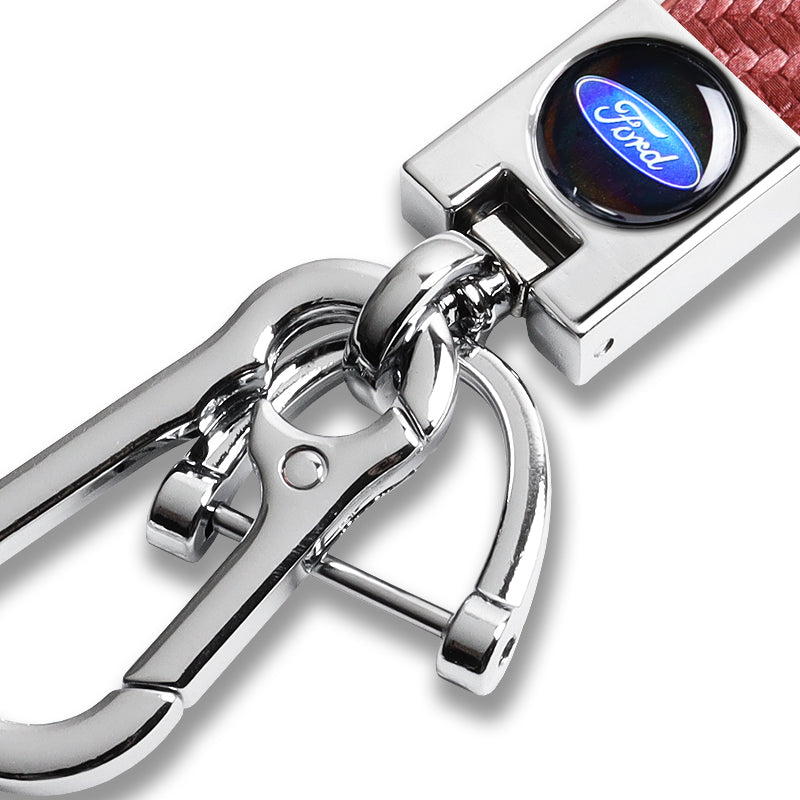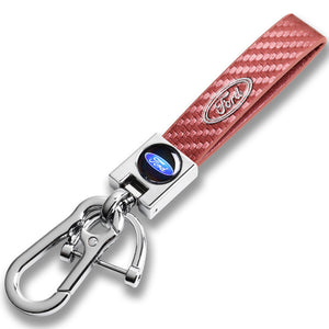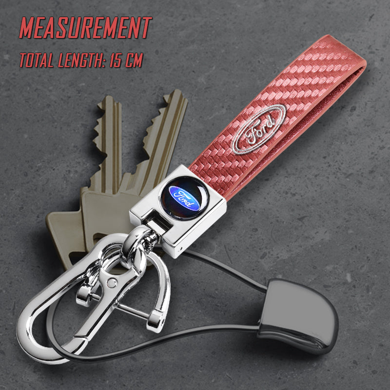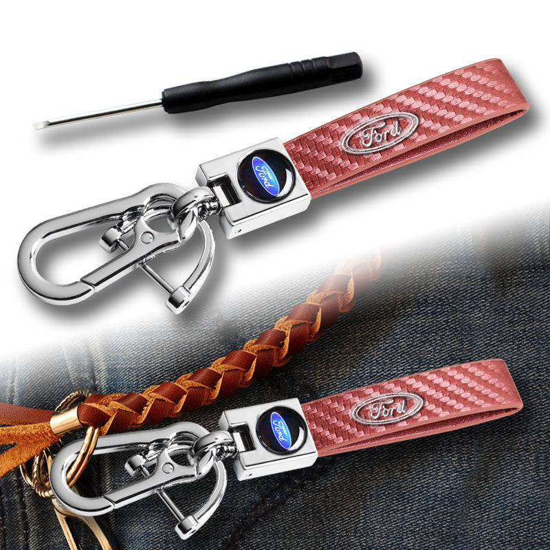 FORD Universal Chrome 3D Logo Carbon Fiber Look Rare Pink Leather Metal Gift Decor FORD Racing Quick Release Lanyard Keychain