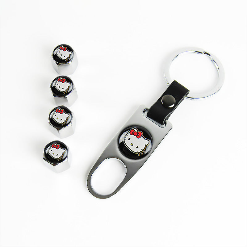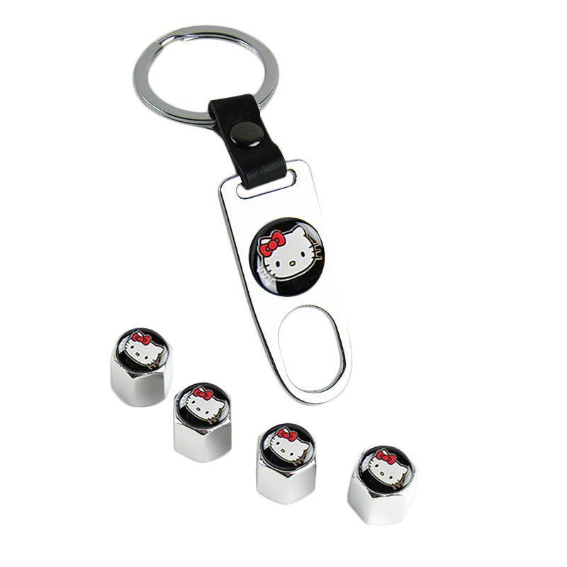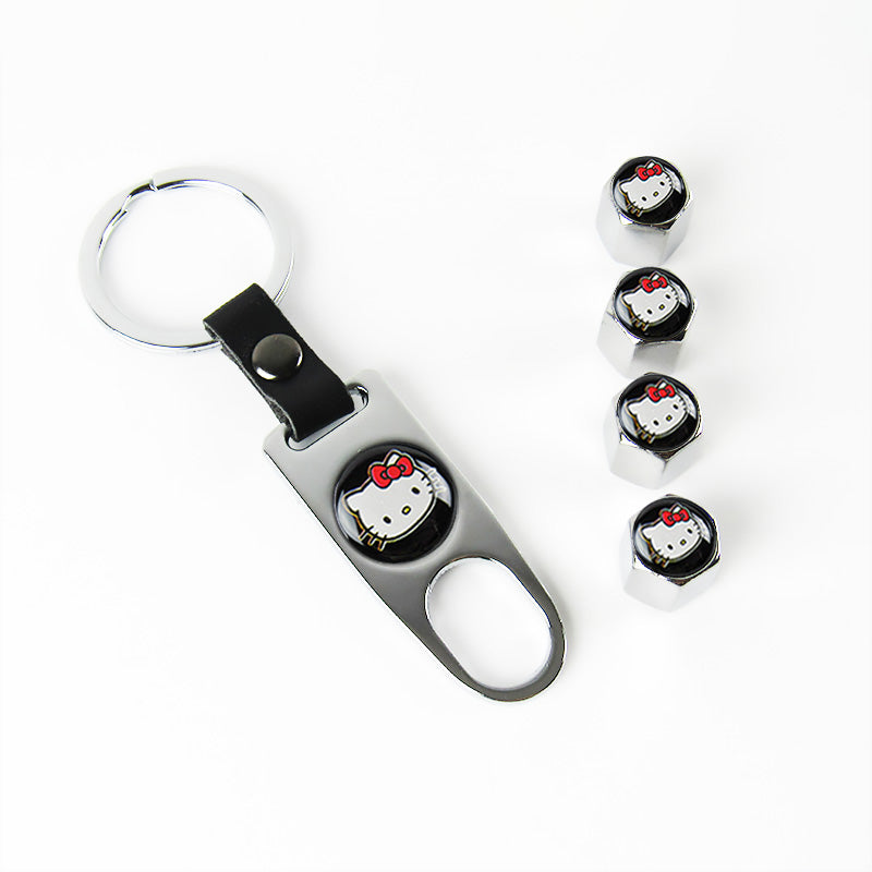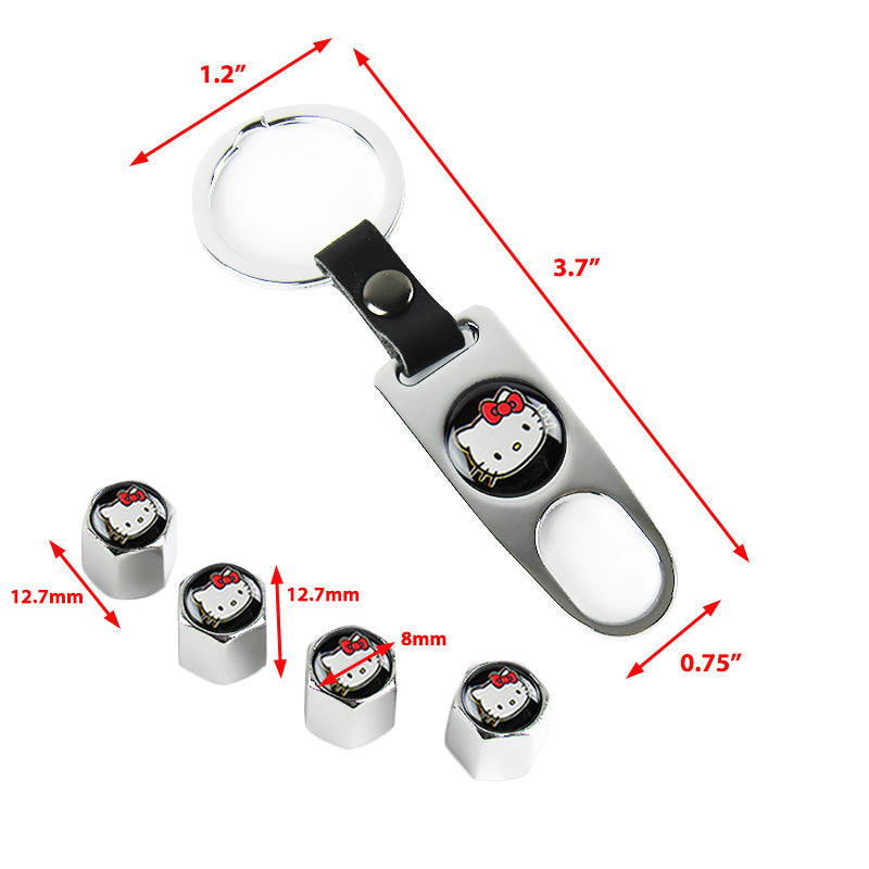 Hello Kitty Car Wheel Tire Valves Dust Stem Air Caps Keychain Emblem KEY FOB Silver Set - US SELLER