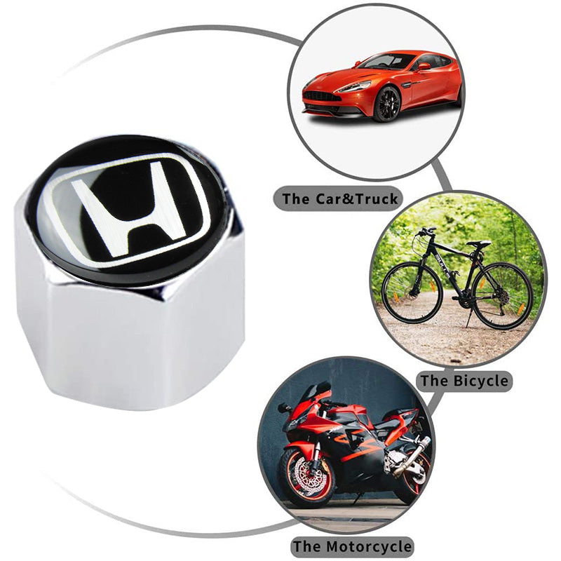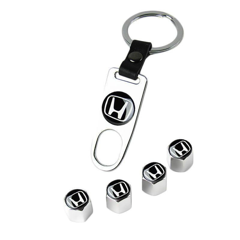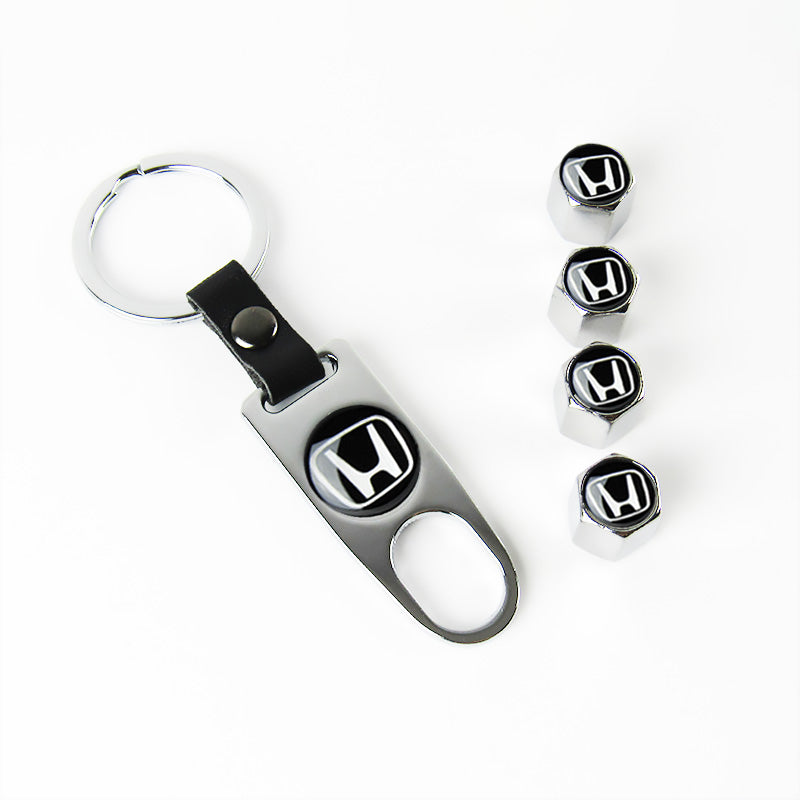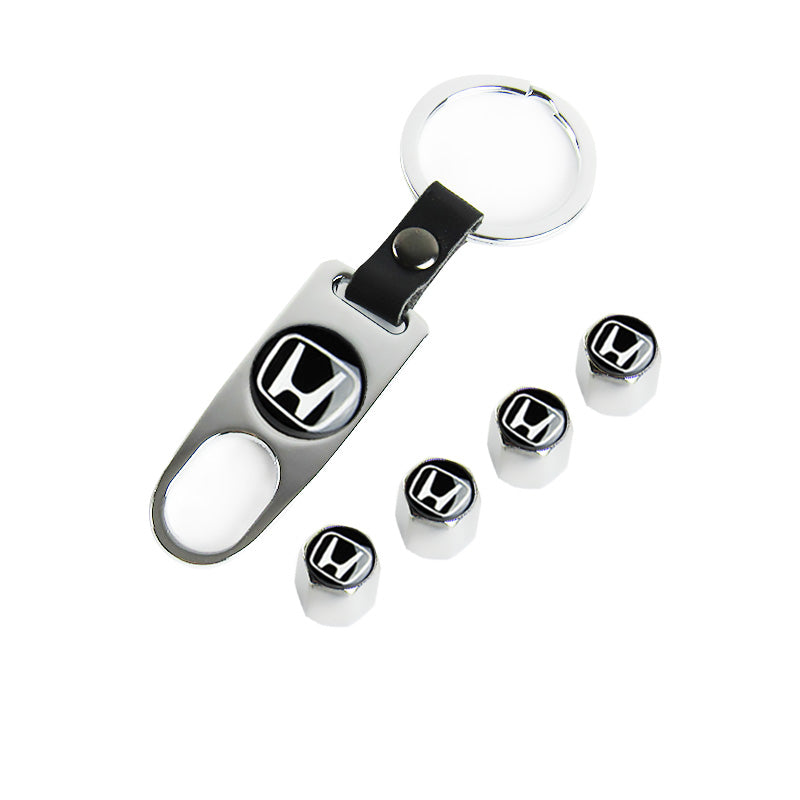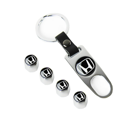 Honda Civic Silver Car Wheel Tire Valves Dust Stem Air Caps Keychain Emblem KEY FOB Set - US SELLER