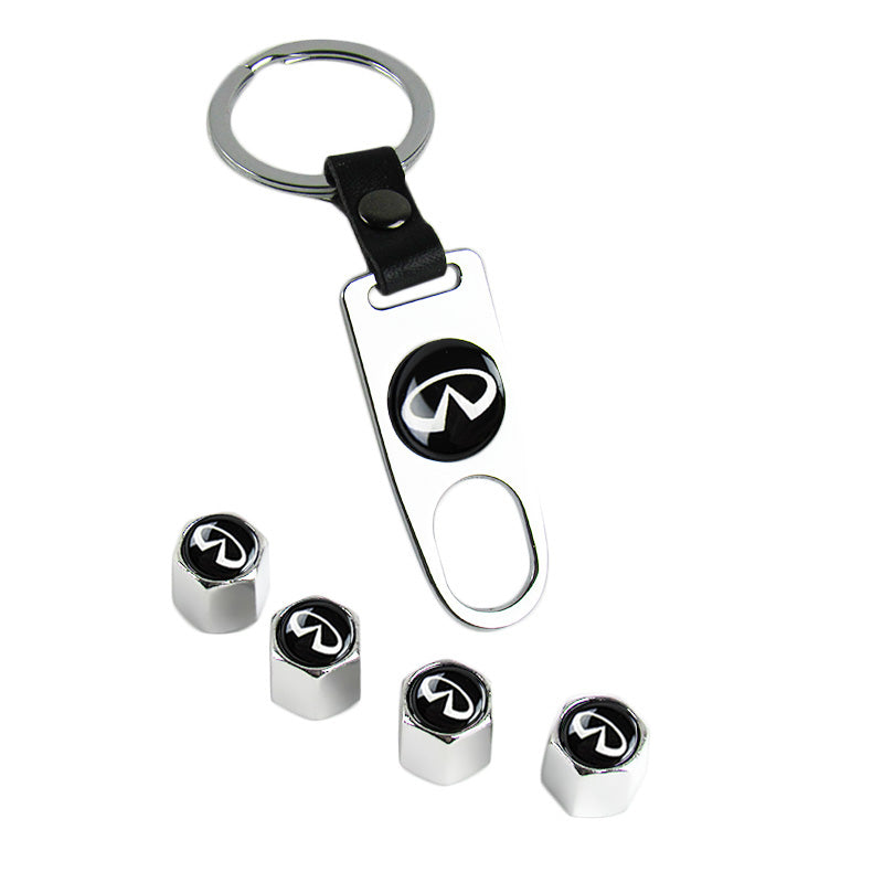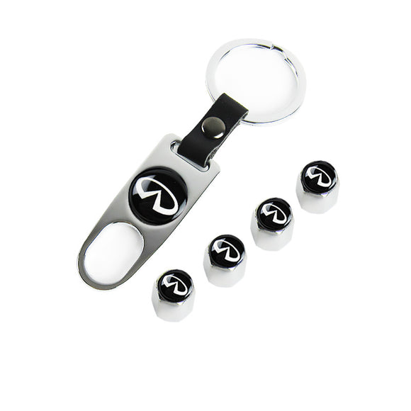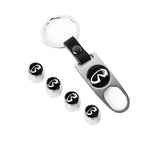 INFINITI Silver Car Wheel Tire Valves Dust Stem Air Caps Keychain Emblem KEY FOB Set - US SELLER