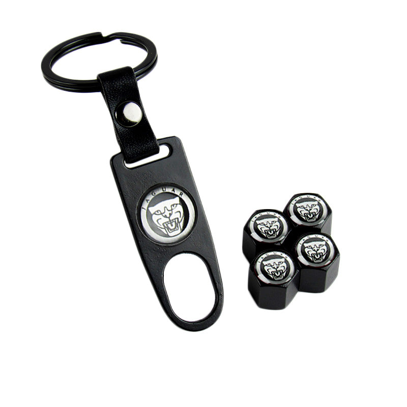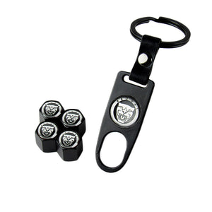 JAGUAR Car Wheel Tire Valves Dust Stem Air Caps Keychain Emblem KEY FOB Set - US SELLER
