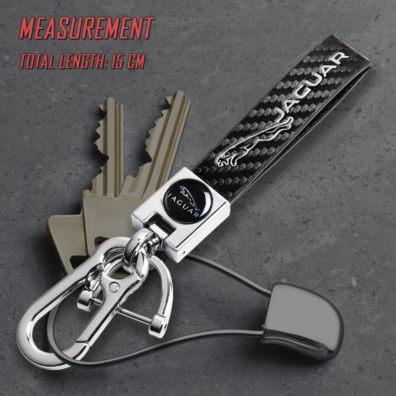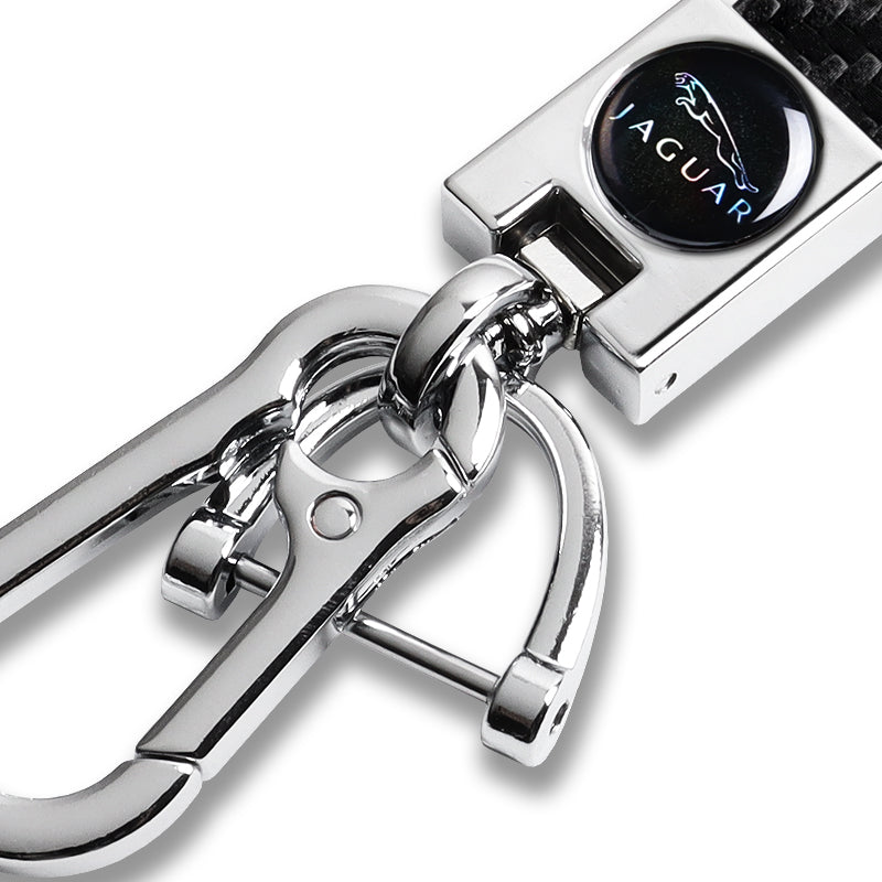 JAGUAR Universal Chrome 3D Logo Carbon Fiber Look Black Leather Metal Gift Decor Quick Release Lanyard Keychain