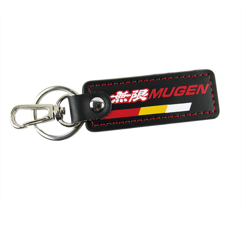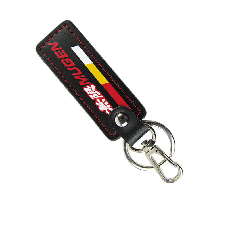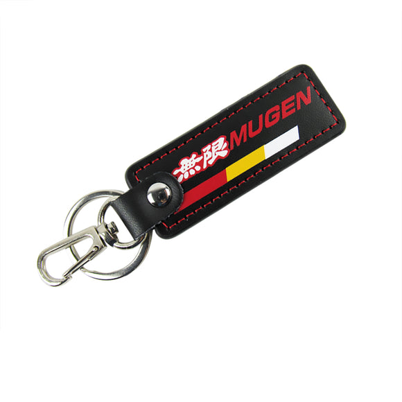 JDM MUGEN POWER SPORTS Honda 1 pc Black Leather Rectangle Key Fob Keyring Keychain Tag Lanyard Holder Clip New