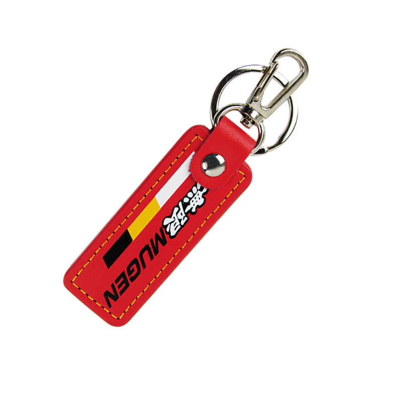 JDM MUGEN POWER SPORTS Honda 1 pc Red Leather Rectangle Key Fob Keyring Keychain Tag Lanyard Holder Clip New