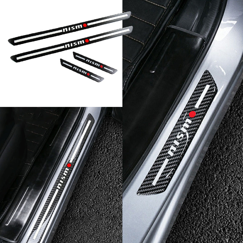 JDM Nismo Carbon Fiber Car Door Welcome Plate Sill Scuff Cover Decal Sticker 4 pcs Set