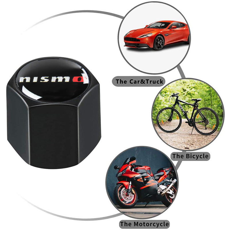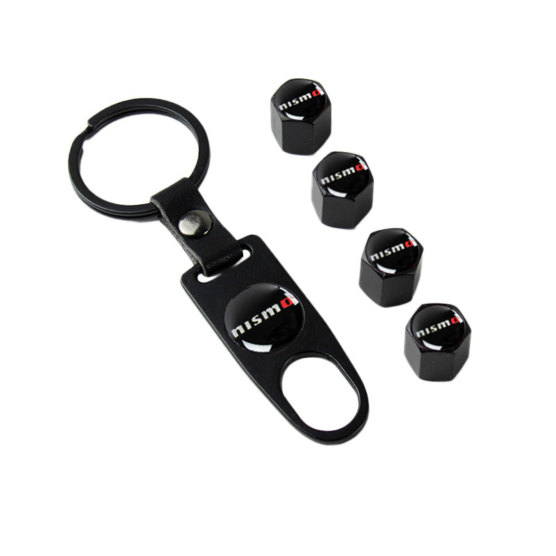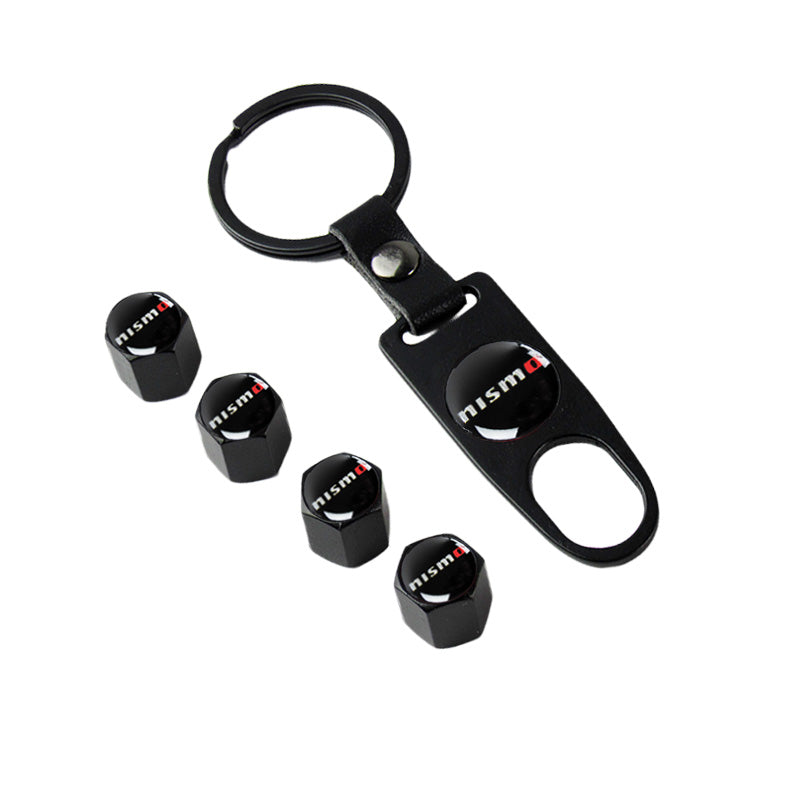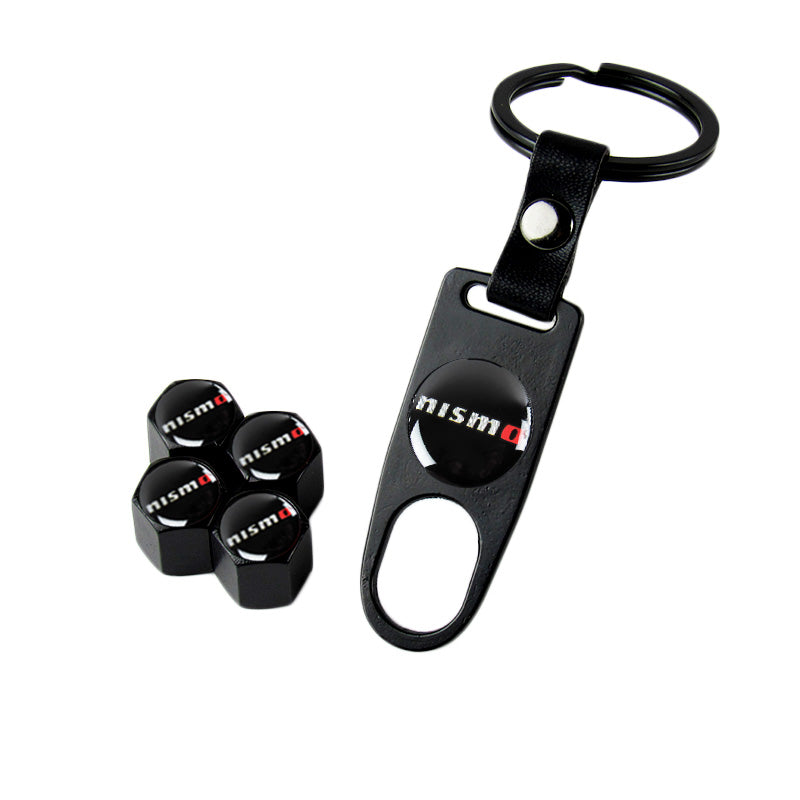JDM NISMO Universal Car SUV Wheel Tire Valves Dust Stem Air Caps Keychain Emblem Black Set