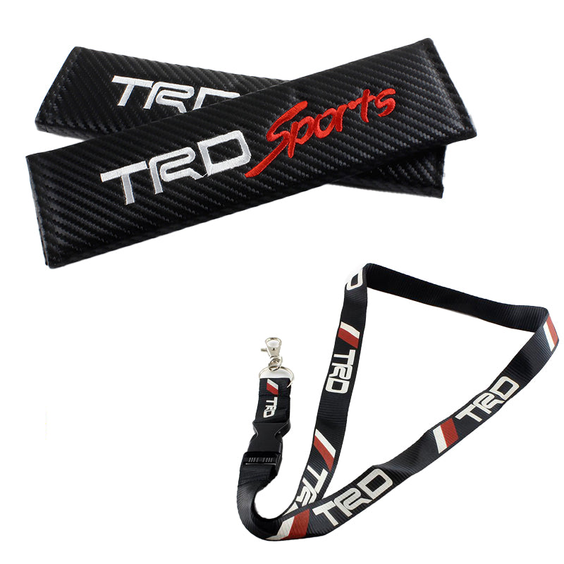 JDM TRD Sports Racing Carbon Fiber Look Embroidery Seat Belt Cover Shoulder Pads 2pcs with TRD Keychain