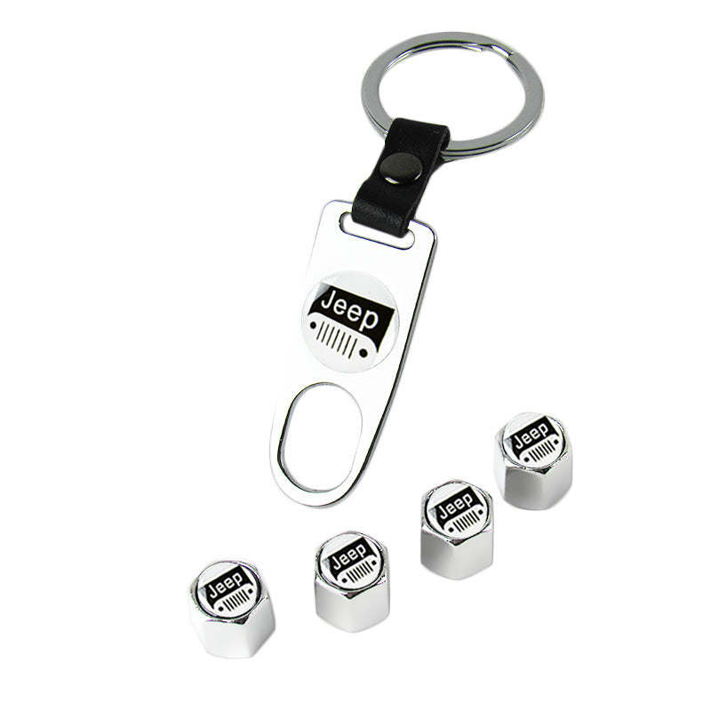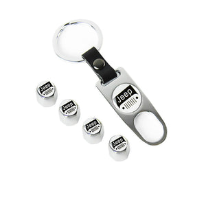 JEEP Silver Universal Car Wheel Tire Valves Dust Stem Air Caps Keychain Emblem KEY FOB Set - US SELLER