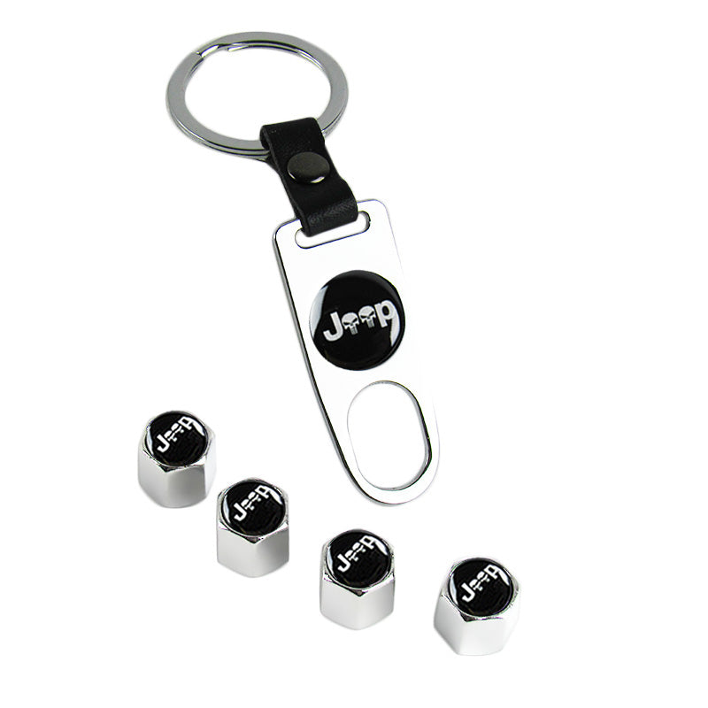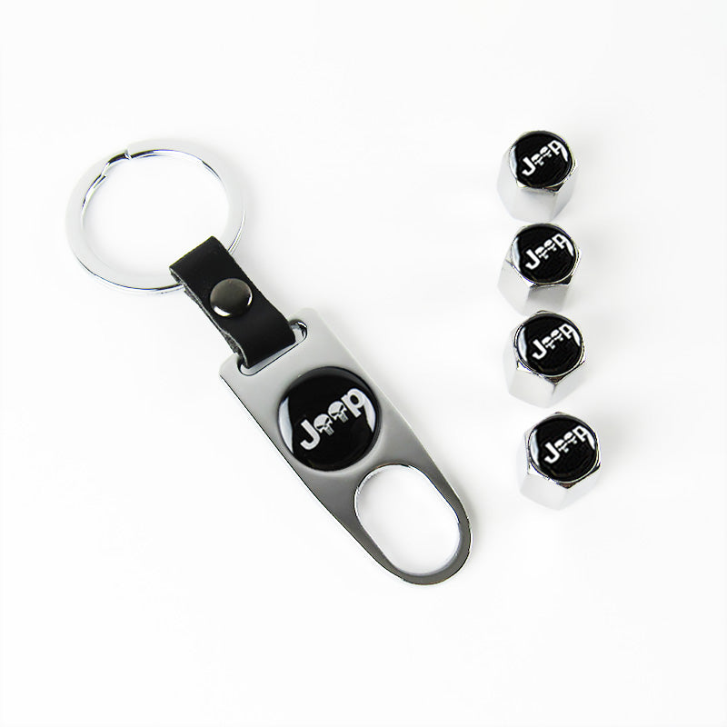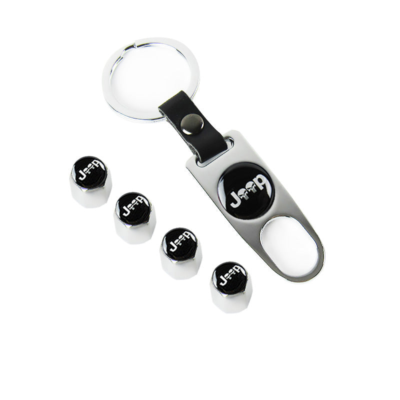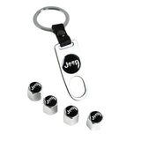 JEEP Universal Car Wheel Tire Valves Dust Stem Air Caps Keychain Emblem KEY FOB Silver Set - US SELLER
