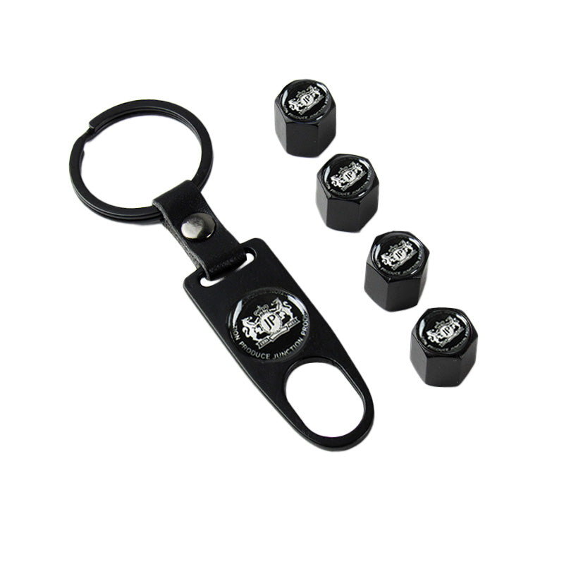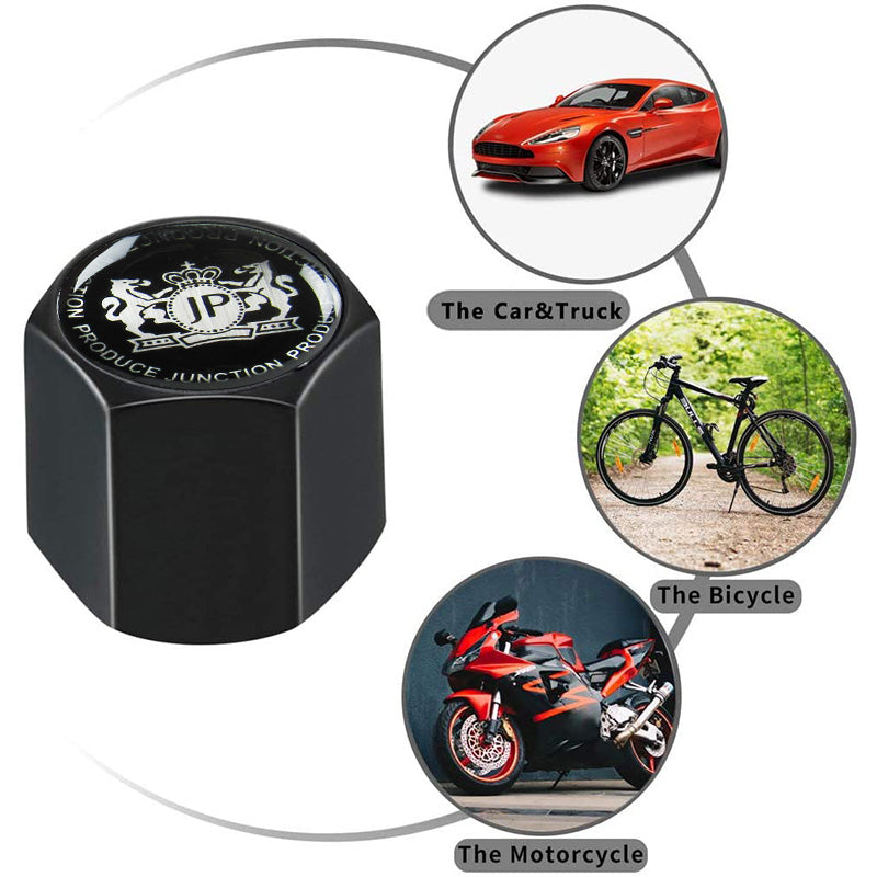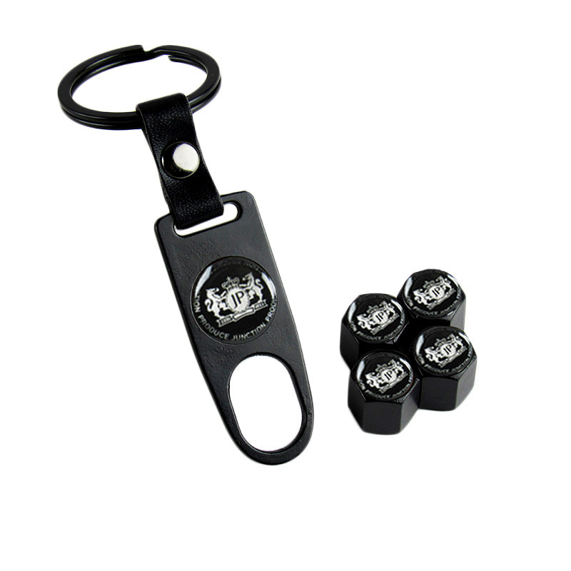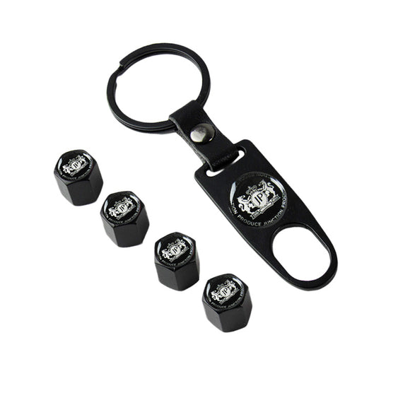 Junction Produce JP Universal Car SUV Wheel Tire Valves Dust Stem Air Caps Keychain Emblem Black Set