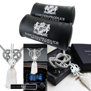 Junction Produce Set of Black Seat Pillows & White Fusa Charm
