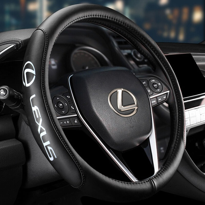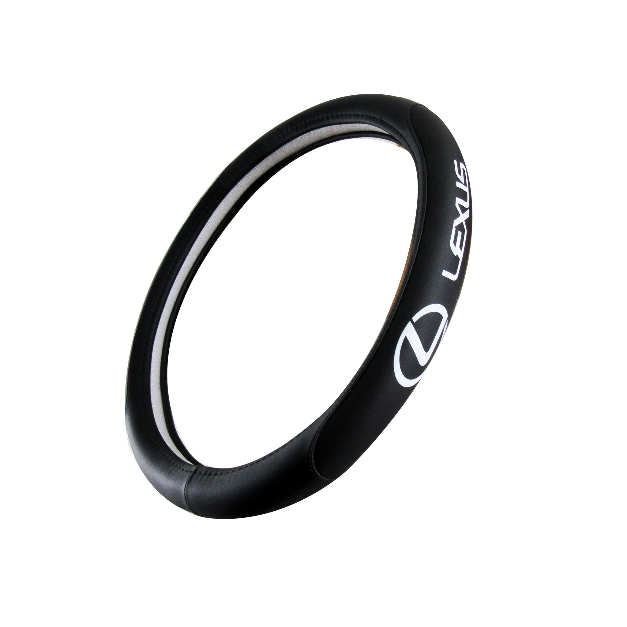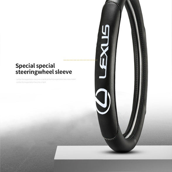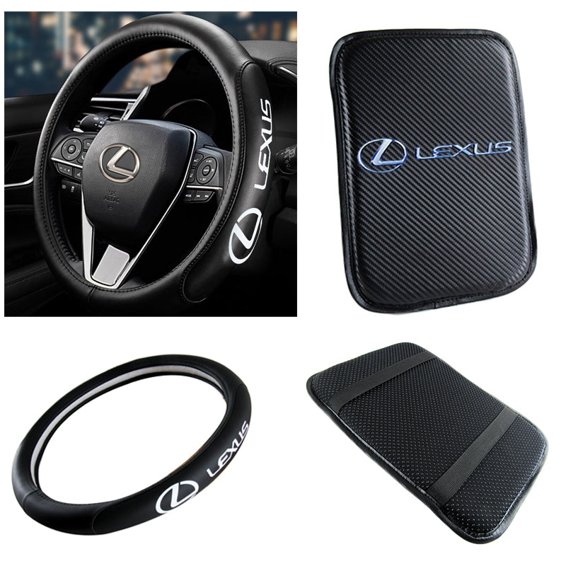 LEXUS Set Black 15" Diameter Car Auto Steering Wheel Cover Quality Leather with Center Console Armrest Cushion Mat Pad Cover
