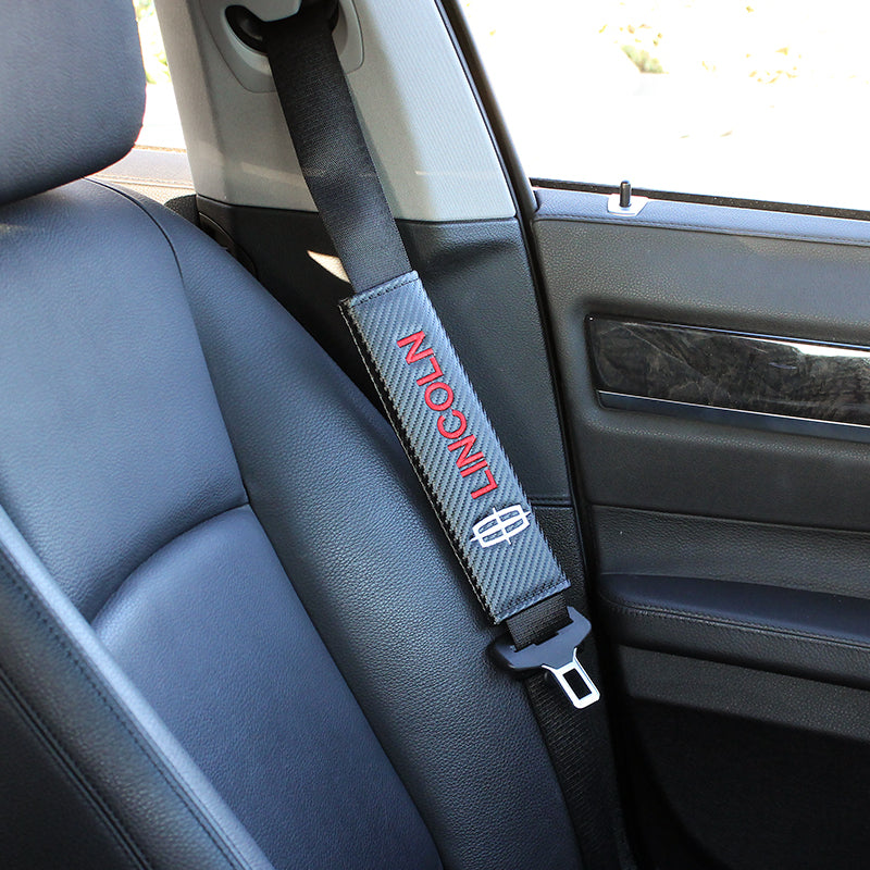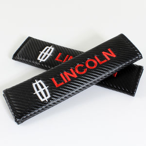 Lincoln Black Carbon Fiber Look Seat Belt Cover Embroidery Logo X2