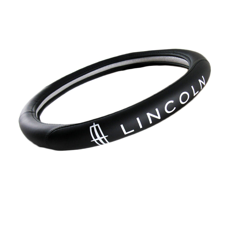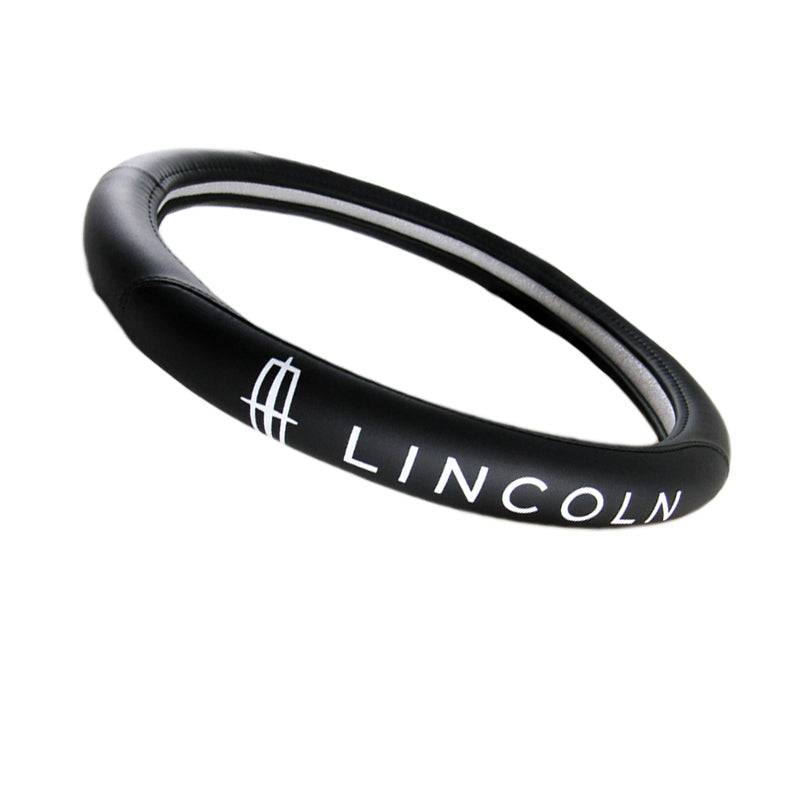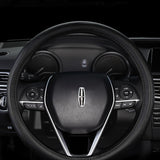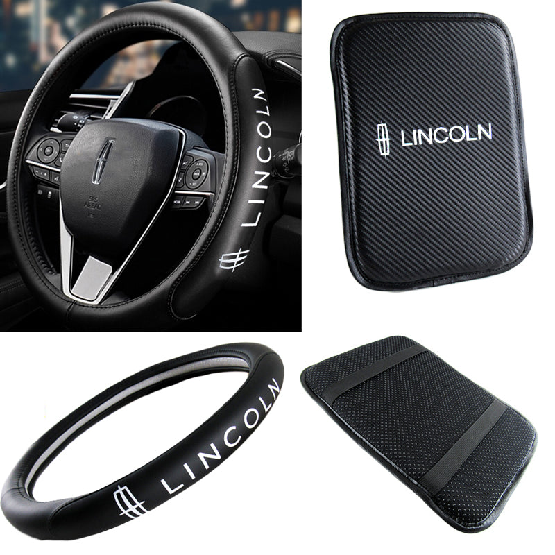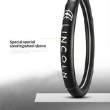 LINCOLN Set Black 15" Diameter Car Auto Steering Wheel Cover Quality Leather with Center Console Armrest Cushion Mat Pad Cover